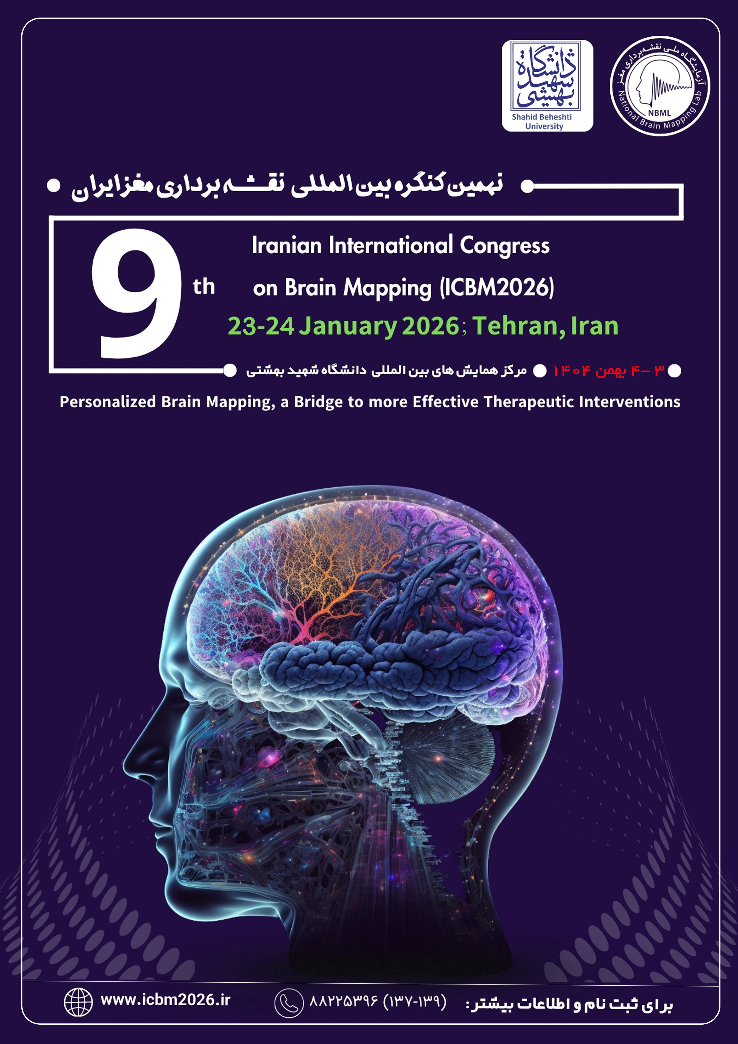 دبیرخانه مرکزی کنگره: تهران- خیابان کارگر شمالی- روبروی خیابان نهم- دانشکده فنی دانشگاه تهران- آزمایشگاه ملی نقشه برداری مغز